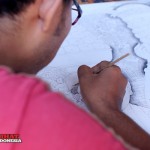 Di sela-sela obrolan Made Cat memamerkan kepada kami koleksi-koleksi hasil lukisannya yang sudah selesai dibuat. Rata-rata terbuat hitam putih. Memang asal muasal lukisan batuan adalah hitam putih dan dilukis diatas kertas. Namun menyesuaikan diri dengan pasar, sekarang-sekarang ini beberapa sudah mulai di warnai dan memilih mengangkat cerita-cerita yang sedang berkembang serta di lukis diatas canvas, namun tehnik melukisnya tetap menggunakan cara tradisional.