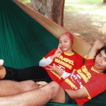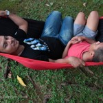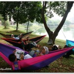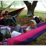 Bersantai di antara pepohonan besar di hutan atau pegunungan, maupun sekedar menikmati hembusan angin pantai ditemani buku bacaan dan dentingan musik yang mengalun dari sebuah playlist di atas buaian hammock selalu saya rindukan. Makanya ketika waktu libur datang, saya selalu membawa serta sang hamock kemanapun saya hendak bepergian. Untung-untung ada lokasi yang bagus untuk saya membentangkan hammock kesayangan.