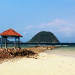 Sejenak mampir ke kawasan wisata pasir putih di pinggir jalan lintas Sumatra. Kondisinya cukup terawat, namun pagi itu air laut sedang surut jadi pantainya tidak terlihat begitu manarik. Di kejauahn berdiri kokoh sebuah bukit di pulau Condong. Menikmati indahnya pulau itu bisa menyeberang dengan perahu sewaan dari pantai pasir putih ini. Sedang asik-asik memotret saya di datangi oleh seorang bapak-bapak manawarkan jasanya untuk menyeberangkan saya menuju pulau Condong. Seandainya saya tidak capek dan memiliki banyak waktu pasti saya akan kembali ke pulau itu, walaupun entah sudah keberapa kalinya saya menyambangi pulau yang terkenal dengan underwaternya yang masih terjaga itu.