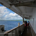 Kapal masih melaju membelah lautan. Perjalanan panjang begini yang harus di bunuh adalah kebosanan. Berbagai macam cara saya lakukan, mulai dari menikmati secangkir kopi di cafe kapal yang menyediakan karaoke dangdut asoy, membaca buku, memotret sambil berkeliling kapal, atau sekedar berbincang dengan penumpang yang lain.