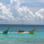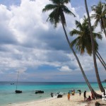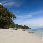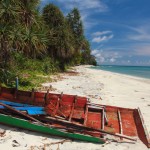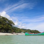 Puas menikmati pemandangan yang luar biasa itu saya pun melanjutkan perjalanan kembali, di peta terlihat adanya jalan yang menghubungan antara Ujung kareung dengan pelabuhan Balohan, ternyata setelah tanya sana-sini, jalan tersebut ternyata belum jadi jadi saya berputar arah, kembali kearah semula yakni pantai Sumur tiga dan kota Sabang, laju motor kembali saya pacu untuk menuju lokasi pantai Pasir putih di daerah Kenekai, artinya saya mengambil arah Iboih kembali, namun sebelum sampai di Iboih ada persimpangan yang mengarah ke daerah Kenekai, saya pun mengambil arah Kenekai, menurut petawisata yang saya bawa di daerah kenekai ada beberapa lokasi wisata, diantaranya adalah pantai Pasir putih, sumber air panas, gunung api, namun saya hanya menyambangi dua lokasi, yang pertama adalah pantai pasir putih, pantainya bagus, terlihat beberapa anak kecil sedang bermain di pantai yang landai dan dangkal ini, beningnya air terlihat dari kejauhan, perahu-perahu khas Aceh juga menghiasi pantai ini, kembali saya memesan segelas kopi sebagai pelengkap menikmati indahnya pantai ini, tanpa piker panjang saya akhirnya menceburkan diri dan bermain bersama anak-anak kecil yang ternyata adalah penduduk lokal, kelakar mereka dengan bahasa daerah membuat saya selalu tersenyum bahkan sesekali terbahak mendengarnya.