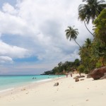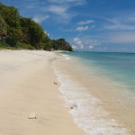 Setelah bertanya kepada warga saya kembali melanjutkan perjalanan menuju pantai Kasih, pantainya sepi dan landai cocok buat berenang dan menikmati indahnya pasir putih pantai ini, namun garis pantainya kecil karena terbatas oleh batu-batu karang yang bertebaran. Hanya sebentar menikmati pantai ini, perjalanan dilanjutkan ke pantai Sumurtiga, namun sebelum pantai sumur tiga saya menemukan plang dengan petunjuk arah pantai Tapak gajah, pantainya bersih sekali, pasir putih membentang panjang, menurut saya pantai Tapak gajah dan pantai Sumur tiga saling bersambungan,