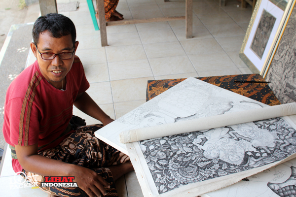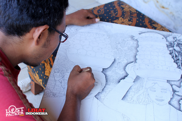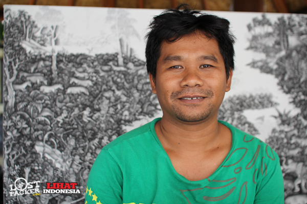 Lain lagi dengan pelukis yang satu ini. Pria Bali yang kalem ini melukis di teras rumahnya. Banyak sudah lukisan-lukisannya yang di koleksi oleh para kolektor lukisan dari berbagai negara, bahkan beberapa diantaranya sudah memenangkan lomba lukis yang diadakan regional Bali ataupun se-Indonesia.