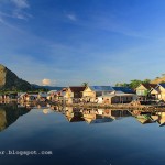 Langit memancarkan warna yang begitu indah pagi itu. Sementara itu rumah-rumah suku bajo yang ada di Pototano ini terlihat rapi berjejer di pinggir laut. Terlihat beberapa rumah sibuk dengan aktifitas paginya. Sementara itu refleksi yang terbentuk di air yang berada di halaman rumah-rumah tersebut sungguh indah sekali. Pototano memancarkan cahaya keindahan yang mempesona pagi itu.