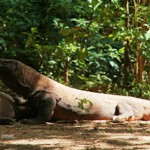 Puas berfoto dan menikmati panorama yang luar biasa itu saya melanjutkan perjalanan menuruni bukit Fregata. Tujuan selanjutnya adalah kawasan peristirahatan yang berdekatan juga dengan perkantoran Taman Nasional. Ketika saya sedang menikmati sekaleng minuman dingin, Echi dan Asdhar terlihat berjalan menuju ke suatu tempat di bawah pohon, ternyata disana juga terlihat seekor komodo sedang bermalas-malasan di siang terik seperti ini. Bergegas saya mengikutinya, memotret dari dekat hewan purba tersebut.