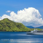 Melewati Pink beach saya melihat ada sebuah kapal pesiar juga yang sedang lego jangkar di perairan Loh Liang. MV Discovery begitu yang saya baca di lambung kapal. Boat-boat kecil terlihat hilir mudik mengangkut para wisatawan mancanegara itu menuju ke dermaga LohLiang.