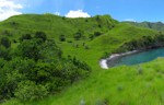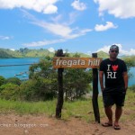 Sampai di puncak bukit Fregata saya dimanjakan dengan pemandangan yang luar biasa. Bukit-bukit yang ada di pulau ini terlihat begitu indah laksana sebuah lukisan dari seorang maestro yang maha sempurna. Lautan biru, pantai pasir putih dan langit biru yang di tingkahi awan berarak menyatu dalam bentang cakrawala yang idah. Sungguh sebuah pesona yang luar biasa terpancar dari bukit fregata ini.