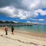 Ternyata kapal sebesar yang saya tumpangi tidak boleh merapat hingga ke pantai. Tujuannya adalah untuk melindungi biota laut yang ada disana. Kapal hanya boleh menambatkan tali di tempat-tempat yang sudah disediakan. Untuk mencapai pantai biasanya di gunakan sebuah boat kecil, dan kebetulan pak Din tidak melengkapi fasilitas perahu kecil itu di kapal ini, alhasil saya harus berenang untuk mencapai pantai indah tersebut.