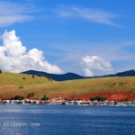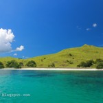 Pak Din sudah menunggu kami di kapal miliknya yang akan mengantarkan saya menuju pulau Komodo. Waktu masih menunjukkan pukul 6:30 dan kami sudah mulai melakukan perjalanan laut menuju pulau Komodo. Pemandangan yang tersaji terlihat begitu indah sekali. Hamparan bukit-bukit hijau dan pantai pasir putih indah terlihat mendominasi lanscape yang saya lihat.