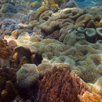 Untungnya saya membawa serta casing underwater kamera poket saya. Pemandangan bawah laut yang tersaji begitu memukau sekali. Coral warna-warni terlihat begitu mempesona. Ikan-ikan dengan corak warna-warna cerah juga seolah mengejek saya untuk mengejarnya. Pada kedalaman 5 meter aja semuanya masih terlihat begitu jelas. Visibility air laut disini sungguh bagus sekali.