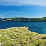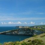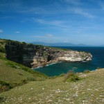 Buih-buih gelombang yang tampak dari atas seolah tidak pernah berhenti menghampas dinding bawah tebing-tebing curam tersebut. Dihiasi oleh hamparan samudrea biru yang sangat luas sepanjang mata memandang, sementara di seberang lautan terlihat cukup jelas Pulau Sumbawa yang terlihat seperti penuh misteri dalam samar-samar nya, sementara gunung Rinjani juga terlihat menjulang di kejauhan.